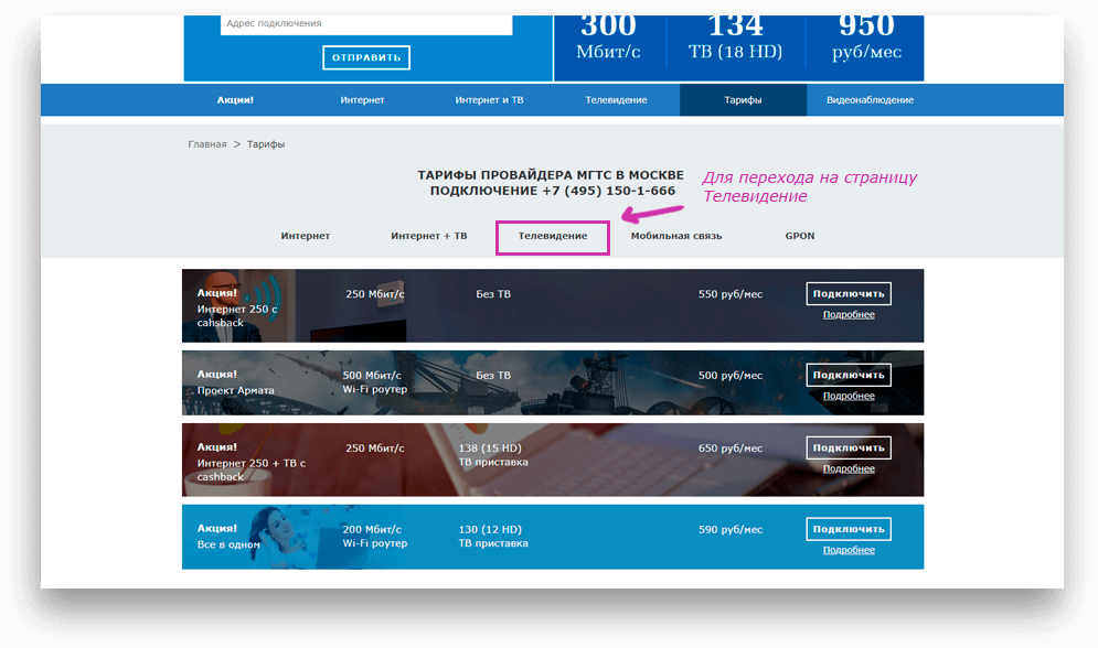 Абонентам, желающим подключить только цифровое телевидение, провайдер предлагает перейти на соответствующую страницу сайта, где они смогут ознакомиться с предлагаемыми тарифами.